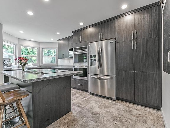 Huge open kitchen areaUpdated cabinetryLarge island with cooktopBuilt-in double ovenVinyl plank flooringGood size primary bedroomDouble garage