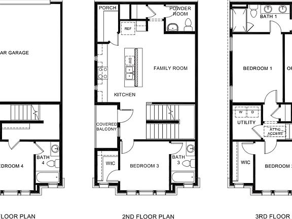 Welcome to the Mustang floorplan — a thoughtfully designed three-story home offering 1,727 square feet of modern living space. The first floor includes a private bedroom with full bath, perfect for guests or a home office, along with convenient garage access.On the second floor, enjoy open-concept living with a spacious kitchen featuring an oversized island with quartz countertops, soft-close shaker-style cabinetry, and a bright family room that opens to a covered balcony — perfect for entertaining or relaxing outdoors.The third floor features the private primary suite with walk-in closet and dual vanity bath, along with two additional bedrooms each with their own bath for ultimate comfort and privacy.This home includes a two-car garage, energy-efficient features, and contemporary finishes throughout.Disclaimer: Photos shown here are representational and may include options or upgrades not included in the standard community plan. Prices, plans, features, and co-broke are subject to change without notice. Additional restrictions may apply. Square footages are approximate.