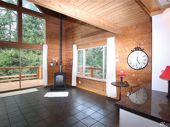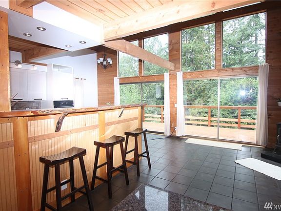 Northwest Contemporary Custom Chalet styled 5 bedroom home on a huge corner lot, 10 minutes to downtown Bellingham yet private with an "in the woods" feel. Expansive decks and cedar shingle siding complement the amazing interior features; Live edge wood surfaces, vaulted ceilings, exposed beams, pine trim, alder doors, 2 gorgeous bathrooms, interior loft off the master bedroom suite, huge windows w/artistic features. Kitchen opens to great room-enjoy the gas fireplace and see cool landscaping