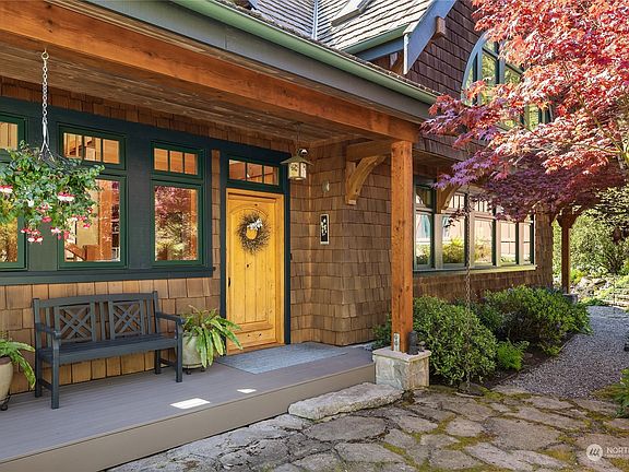 Discover this quintessential Bainbridge Island home, nestled on the sunny south slope of Baker Hill, with commanding views of Mt Rainier and the marine traffic of Rich Passage. Situated on 1.25 acres and surrounded by mature landscaping, privacy and tranquility are guaranteed, although Lynwood Center and Gazzam Lake trails are minutes away. Secluded in a quiet neighborhood on a dead-end street, this three-bedroom, 2.5-bathroom residence exudes charm and quality. Extensive wood millwork and attention to detail are evident throughout. In addition to the cook’s kitchen and stunning living room, enjoy a delightful main floor sunroom, lower level bonus room, and dedicated media room. One of a kind, this enchanting home will steal your heart!