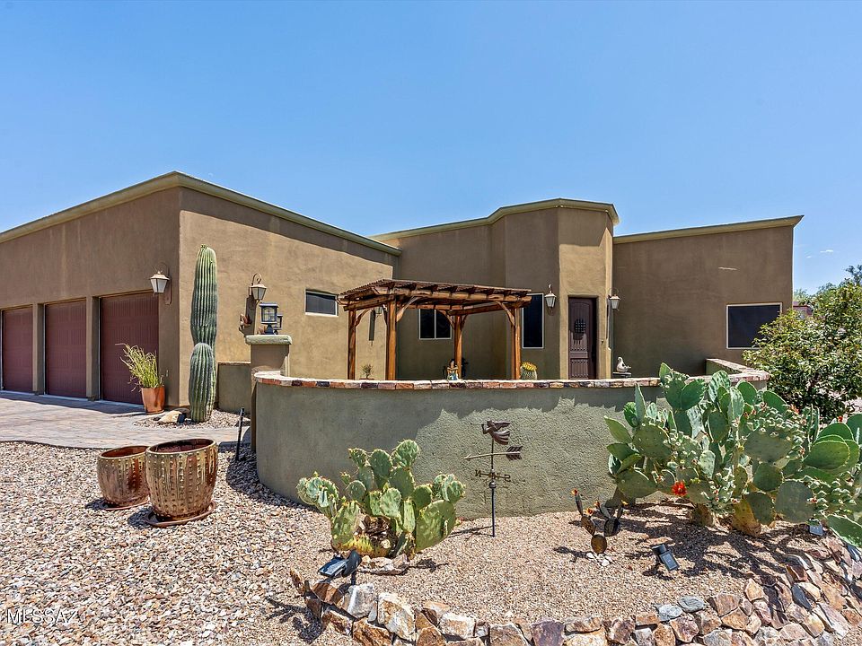 Discover uncompromising craftsmanship and sophisticated design in this remarkable 4BR/3BA masterpiece. Set against the stunning backdrop of the Santa Catalina Mountains, this 2,243 sq ft sanctuary showcases dramatic barrel vault ceilings, premium finishes, and a brilliant floor plan that seamlessly blends indoor elegance with the natural beauty of its expansive desert setting. The home's thoughtful layout provides separate living spaces throughout, with a floor plan designed for versatility and functionality. Architectural highlights include dramatic barrel vault ceilings, multi-layered tray ceilings, and expansive windows that fill the interior with natural light. Premium tile flooring features throughout the entire residence with absolutely no carpet--ideal for desert living and easy maintenance. The chef's kitchen stands as a centerpiece with premium white cabinetry, exotic granite countertops with striking natural veining, and high-quality stainless steel appliances. A distinctive copper range hood and Moorish-inspired tile backsplash add artistic elements that bridge the contemporary design with subtle southwestern character. The open concept layout creates excellent flow between living spaces while maintaining architectural interest through varying ceiling heights. The primary bedroom features a multi-tiered tray ceiling, custom millwork, and serene ambiance. Its spa-inspired ensuite bathroom includes a freestanding soaking tub, dual granite-topped vanities, designer tile floor in geometric pattern, and a walk-in shower with decorative tile accent. Each additional bedroom offers comfortable living space with premium finishes, while custom fixtures and architectural details maintain visual consistency throughout. The property includes multiple outdoor living areas, including a courtyard with pergola and artificial turf. A spacious three-car garage provides ample vehicle storage, and the generous one-acre lot offers additional space perfect for outdoor enthusiasts and desert explorers. Professional xeriscaping showcases mature saguaro and prickle pear cacti, decorative rock placement, and thoughtful hardscaping that complements the home's architectural style. Located in the prestigious Catalina Foothills Estates No. 2, one of Tucson's most historic and coveted neighborhoods along Camino Real, this property connects to the rich heritage of the area first developed in the 1930s by visionary John Murphey and renowned architect Josias Joesler. The home's address on Camino Real ("Royal Road" in Spanish) places it along a namesake of the historic network of Spanish colonial roads that once connected Mexico City to California and the American Southwest. Catalina Foothills Estates No. 2 is known for its generous lot sizes, stunning mountain views, and architectural significance. Today, the neighborhood remains one of Tucson's premier locations, providing close proximity to shopping, dining, and cultural attractions while being surrounded by stunning natural beauty of the Sonoran Desert. This gem won't last - priced to sell! Call now to schedule a tour.