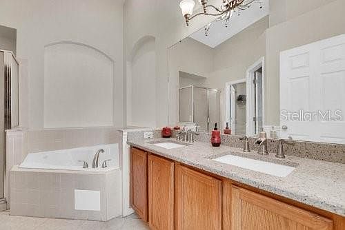 VACANT SHOW ANYTIME. BRAND NEW ROOF INSTALLED fully transferable docs and warranties for your peace of mind. THE WILDLY POPULAR & MOST SOUGHT AFTER HUNTERS CREEK COMMUNITY. THIS BEAUTIFUL HOME IS SITUATED ON ONE OF THE THE LARGEST LOTS IN THE SUBDIVISION. IN CLOSE PROXIMITY TO VISTA PARK AND WEST CREEK ELEMENTARY SCHOOL. NO REAR NEIGHBORS AND A VERY LARGE BACK YARD. THE HOME BOASTS OVER 2100 SQFT OF LIVING SPACE. FOUR LARGE BEDROOMS EACH FEATURING CEILING FANS AND LARGE CLOSETS. THE MASTER SUITE IS HUGE WITH OVER 400 SQFT OF SPACE, AN EXTRA LARGE WALK-IN CLOSET WITH A BUILT IN ORGANIZER, SEPARATE SHOWER, LARGE GARDEN TUB, PLUS AN EXTENDED LENGTH HIS AND HERS SINK. GENEROUSLY SIZED LIVING ROOM, DINING ROOM, AND FAMILY ROOM ALL WITH HARD OAK WOOD FLOORS. THE KITCHEN FEATURES- ALL STAINLESS STEEL APPLIANCES TO INCLUDE: A LARGE REFRIGERATOR, GLASS TOP RANGE, STAINLESS STEEL SINK, FUNCTIONAL ISLAND, AND RECENTLY UPDATED QUARTZ COUNTER TOPS ROUNDS OUT THE BREATH TAKING VIEWS OF THIS METICULOUSLY DESIGNED KITCHEN. Irrigation system is connected to a well. Free water for great lawn maintenance cost efficiency. HUNTERS CREEK IS A SHORT DISTANCE FROM EXCELLENT SHOPPING, "A"RATED HUNTERS CREEK SCHOOLS, AND ATTRACTIONS INCLUDING WALT DISNEY WORLD! THIS HOME IS PRICED SELL FAST AND AN ABSOLUTE MUST SEE. Info recorded on MLS is intended to be accurate but cannot be guaranteed, Buyers/Buyer's agent must verify all measurements, room sizes, Taxes, HOA rules and restrictions.