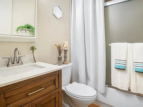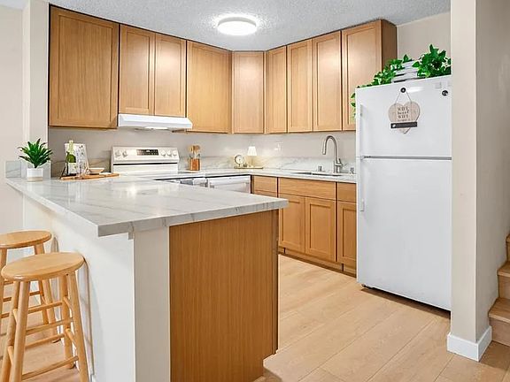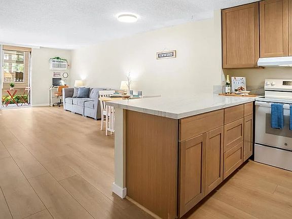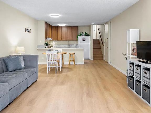 This bright, beautifully remodeled home lives larger than its size, with an open-concept kitchen, living, and dining area ideal for everyday living and entertaining. Brand-new upgrades include AC, blinds, lighting, AquaShield waterproof laminate flooring, plush carpet, and high-quality padding in the bedroom. The new kitchen features quartz counters, soft-close cabinetry, a new stove and dishwasher, and a newer refrigerator. The updated bath includes a new vanity, mirror, and toilet. The spacious living area offers room for a home office or play space, while the split-level design provides privacy for the bedroom and bath. The home is in a gated community with assigned parking. There is a nice, clean swimming pool. There is a large storage closet