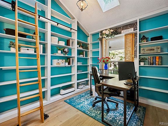 **OPEN HOUSE this Sunday, October 5th from 12:00 - 2:00 PM** Set on an expansive private lot in northeast Denver, this distinctive residence blends eclectic design with thoughtful functionality, offering a home that feels both curated and inviting. The main level opens with a light-filled kitchen featuring open shelving, generous counter space, and seamless flow into the dining area where a wood-burning fireplace adds warmth and character. Upstairs, the loft area is enhanced with a built-in writing desk overlooking the living space below, creating a quiet nook for creativity or study. The third bedroom, currently envisioned as a library with floor-to-ceiling bookshelves, can easily serve as a traditional bedroom or office, providing versatility for evolving needs. The primary suite is a restful retreat with abundant natural light, access to a private balcony, and a three-quarter bath highlighted by penny tile and terra cotta flooring for a touch of artisanal charm. The finished basement extends the living space with a generous recreation room, well-appointed laundry area with folding station, and additional storage. Outdoors, the large fully fenced yard invites entertaining and everyday enjoyment with a covered patio, fire pit, and raised garden beds. A rare combination of privacy and proximity, the property is ideally situated near shopping, dining, transit, and Denver International Airport, offering convenience without compromise. With its unique architectural elements, surprising built-ins, and inviting outdoor spaces, this home presents an opportunity to own a residence that balances individuality and practicality, ready to be tailored to your lifestyle.