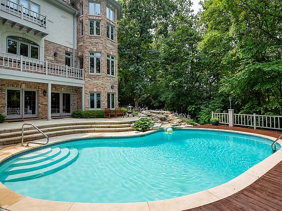Grand entertaining house, with in-law apartment! Set on a glorious 2.81 private acre estate. Your guests arrive through the gated entry, along the paved drive, and enter into your two-story grand foyer with circular oak staircase, crystal chandelier, marble flooring. Massive oak moldings, in scale with the rest of the home, speak to the quality construction. Two-story great room (20 ft coffered ceiling) overlooks pool area with multi-story pool house, waterfall, more. Walkout lower-level with huge windows, room for all your toys, full bar area and fireplace, opens to pool. 5bed/6.2bth, 5 gas fireplaces. Study finished with cherry, marble fireplace, as in the grand estates of Europe. Second floor in-law/studio apartment has chairlift from main floor, offers guests and in-laws their own living area and privacy. In-law/guest apartment has full kitchen, Murphy bed for extra guests, full bedroom adjacent for even more room, full bath, outside balcony. Third stairwell outside in-law apartment is sized to fit elevator. Primary bedroom features high vaulted ceiling, granite fireplace, spiral staircase to loft area. Light, bright, primary bathroom features double steam shower, bidet & and whirlpool. Family bedrooms all feature their own private baths. Yes, there is a third floor! There you find your own 16-seat theater with surround sound, screen curtain and special lighting. Most of your family time will be spent in that magnificent lower level, with radiant heated floor, game room, full bath, custom bar room, granite counters, refrigerator, and ice maker. Custom wine-cellar, fireplace, exercise room. The exercise room was originally built for collector car display and can fit 2 vehicles, with access via double glass removable exterior doors. Lutron lighting system, oak floors with Brazilian cherry accents, thick oak and cherry crown & floor moldings, custom thick, solid, oak or cherry doors, surround sound system with speakers including pool area. Garage: 4 car, heated, pit area to work on cars. Two laundry areas, beveled glass French doors, 3 HVAC units, some newer, plus boiler for radiant heat. Irrigation system, hard-wired security system. Current owner focused on mechanical upgrades. Quiet cul-de-sac backing to large executive homes, great privacy. Deep well. This is not your cookie-cutter HGTV home. You must appreciate Old-World quality and be willing to make the cosmetic changes you need for your lifestyle. NOTE ON SF: 8800+ is SF including 3rd floor theater room and finished walkout/daylight lower level. The smaller number is 1st and 2nd floor only