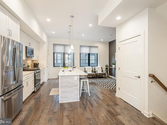 Welcome to 4545 Riverside Way at The Locks, Riverside Townhomes in Manayunk. Nestled between the scenic Schuylkill River and the historic Manayunk Canal, you will marvel at the most idealic canal and river views from multiple locations within the house! Take a brief stroll over the canal and you'll find yourself in the heart of Manayunk where you can immerse yourself in the unique restaurants, bars, galleries or a diverse array of boutiques! Manayunk offers a distinct and charming downtown atmosphere, as well as access to nature with trails for running and riverbank paths for leisurely walks. If you want to explore further, The Locks provides easy access to Center City, Philadelphia through the Manayunk SEPTA station or a quick drive. This luxurious, extra wide, CORNER townhome offers the perfect blend of charm and sophistication with its classic brick exterior, spacious outdoor areas, and modern amenities. It's the perfect place to call home. As you enter the front door of this EnergyStar certified home, you'll be greeted with a spacious flexible room overlooking the canal that can be used as a home office, mud room, home gym or recreation room. Up the next level, you will be WOWED by the open floor plan, American Scraped Hickory hardwood floors, high ceilings, modern light fixtures, marble accent wall with decorative fireplace and ample natural light flowing through the large windows. The gourmet, eat-in kitchen is designed for a chef, and has all of the latest appliances and finishes along with a stylish accent wall. There is a perfectly placed powder room for your guests on this level as well. Up to the third level, you will find two large and sunny guest bedrooms, one being en-suite, a lovely hall bathroom and a laundry room featuring a full-sized washer/dryer. Each floor offers a large hallway storage closet. On the fourth floor, you'll find a private owner's retreat complete with a den/study with breathtaking views of the Schuylkill River and a large closet. The sitting room /office could easily be converted into a 4th bedroom. The en-suite bathroom features a double vanity, a custom stall shower, and a soaking tub. Additionally, the home is equipped with a two-zone HVAC system and a 2-car garage. You'll also enjoy approx 8 years left on the TAX ABATEMENT. The rooftop terrace is a private oasis with a gas fireplace, a grill, and beautiful outdoor furniture, providing stunning water views from every angle. Don't miss out on this spectacular home.
