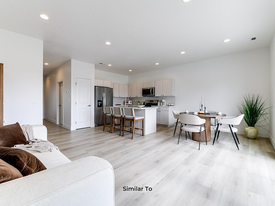 MLS# 288250 Ask About Our $10,000 Fall Savings! Discover the perfect blend of comfort, style, and value in this beautiful Pro Made Home - Townhouse featuring a contemporary blend of siding. A charming walkway welcomes you to the elegant front door and into a thoughtfully designed entry foyer that opens into a spacious great room. The open-concept layout seamlessly connects the great room, kitchen, and dining space, ideal for everyday living and entertaining. The kitchen is equipped with stainless steel appliances, quality cabinets with soft-close doors and drawers, an island, and a stylish 6" backsplash, some homes even include a full-height tile backsplash upgrade. Step outside to a private patio with easy access to the community paths and other amenities. The primary bedroom offers a relaxing retreat with an en-suite bathroom featuring a shower, vanity, and walk-in closet. Future community amenities will include a pool and clubhouse, dog park, and scenic paths, perfect for enjoying the outdoors and connecting with neighbors. Visit our model homes today to experience the Exceptional Value and Uncompromised Quality that set us apart from other builders in this price point.