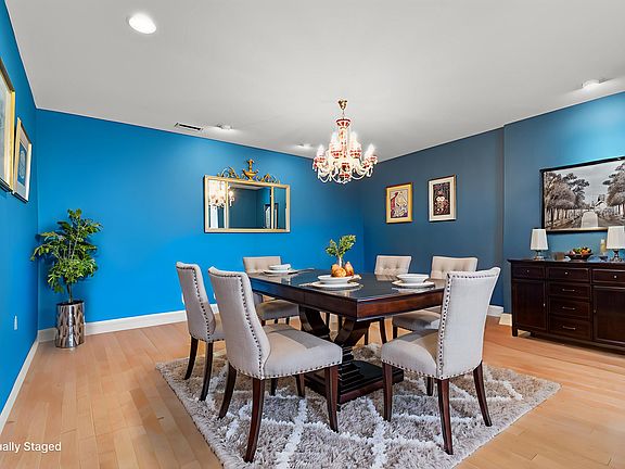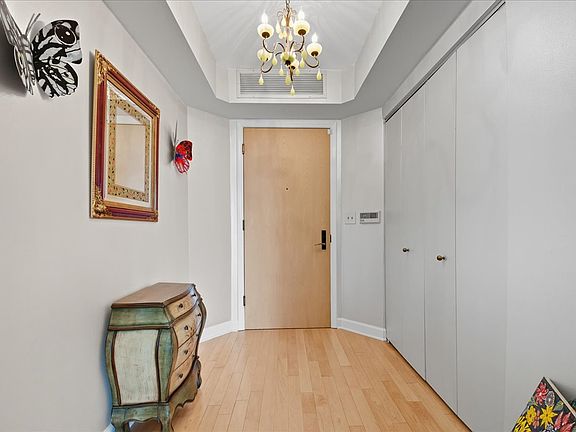 Lovely, bright 2 bedroom, 2 bath unit in The Barclay Place. Stunning Ashwood hardwood flooring throughout. Spacious living room and dining room with a gas fireplace. Beautiful balcony stretches from the living room to the large eat in kitchen and is accessible from both rooms. Kitchen has ample cabinetry and counter space. New refrigerator and disposal in 2025. Dishwasher and Kitchen-Aid double ovens hardly used. The primary bedroom suite has a huge bathroom including a shower stall as well as a huge walk-in closet. All closets throughout this unit have upscale closet systems. Parking spots are assigned. They are numbers 273 and 274 in the garage P1. Storage just down the hall. A/C/Heat compressor new in 2024, and new dryer and A/C thermostat in 2024. The upscale workout facility in the building is newly redone. Outdoor space, including picnic tables, large pool, and tennis courts are a huge plus. 24 hour doorman. This building has a beautiful rentable party room with a kitchen, as well as a library for the owners. Don't miss this fantastic opportunity to call this home! Items excluded: chandelier in dining room, all mezuzah covers, green chandeliers in foyer and in master bedroom and bathroom sconce. Sold As/Is