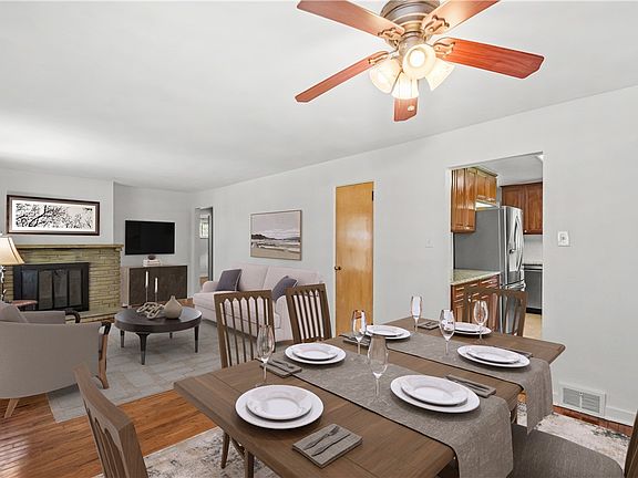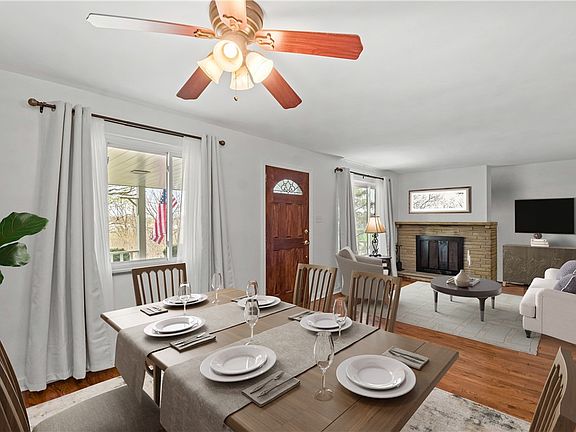 Lovely raised ranch with 4 sides brick on over an acre lot in the South Fayette SD! Enjoy a warm welcoming from a large covered patio, the perfect spot to sip your morning coffee or to relax with friends! Inside you’ll find a cozy Living room warmed by a fireplace with stone surround which is open to the DR, an ideal layout for entertaining guests! The chef in your family will love cooking in this well-equipped Kitchen with fab stove featuring convection oven & induction cooktop, SS appliances, tile backsplash & ample cabinetry. 3 generously sized bedrooms & a beautifully updated full bath with double bowl vanity & tile surround round out the main level. An additional covered patio is found off of the Kitchen overlooking the yard with wooded border. Spacious basement is great for a workout space, storage or to finish for addl living space! Newer furnace, electrical & water tank means less headaches!
