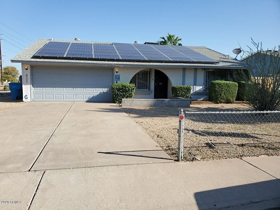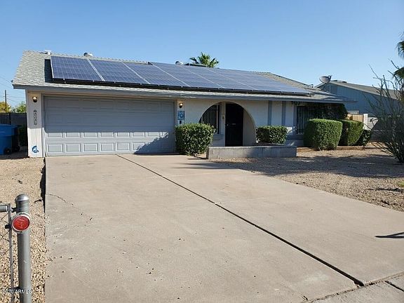 Move in ready 4 bed/2 bath home available in southeast Phoenix. Excellent location allows easy access to freeways and all that the Phoenix Metro area has to offer. Must see interior is open and bright with an ideal floor plan offering separate living and family rooms. Beautiful tile and wood flooring in all common areas. Custom paint tones and soft natural lighting throughout. Stylish kitchen boasts brand new cabinets & granite counters, SS appliances, and breakfast bar that opens to the family room that's perfect for entertaining. Bedrooms are generously sized and the master includes a private 3/4 en-suite. Step outside onto your rear covered patio, extending the entire length of the home. New AC & leased solar. You will love the sparkling private pool for cooling off on hot summer days.
