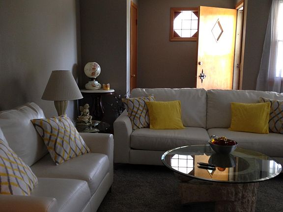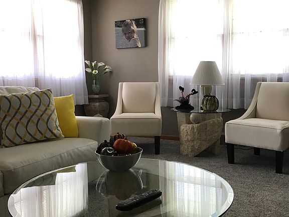 Brick raised ranch duplex with 1020 square feet on upper floor, 890 square feet finished basement with bathroom and laundry room. Hardwood floors on the main floor living room, hallway and both bedrooms . Carpet in the finished basement. Two bedrooms up, one bath on each level. Appliances (stove, refrigerator, washer and dryer) are furnished. Tenants are responsible for mowing grass, snow removal, garbage pickup and all utilities. Single car garage/driveway on basement level. Renter pays for all utilities, garbage pickup, must mow lawn and clear snow. No smoking allowed.