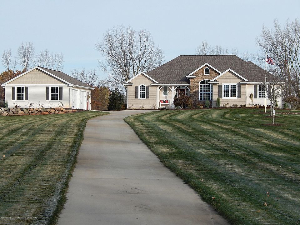 TRULY A FIND! OUT OF A MAGAZINE 2127 SQ. FT. ABOVE GRADE WALK-OUT RANCH, NESTLED WAY OFF THE ROAD IN A MAJESTIC SETTING ON APPROXIMATELY 2.5 ACRES. STUNNING PRIVATE VIEWS! OVER 1800 SQ. FT. IN THE FINISHED LOWER LEVEL. WONDERFUL OPEN FLOOR PLAN. GLEAMING HARDWOOD FLOORS. GREAT ROOM. FORMAL DINING ROOM WITH SPECIAL ARCHED WINDOW, ARCHITECTURAL INTEREST THROUGHOUT, BEAUTIFUL FIREPLACE WITH SLATE TILE ACCENTS, & ACCESS TO THE STAMPED CONCRETE PATIO WITH STONE RETAINING WALL, FIRE TABLE, HOT TUB, AMAZING LANDSCAPING, & MORE! FLOOR TO CEILING WINDOWS IN THE DINETTE. KITCHEN WITH CHERRY STAINED CABINETS, NEWER STAINLESS-STEEL APPLIANCES, EATING BAR, TILE BACK SPLASH, & LOADS OF COUNTER TOP SPACE. DREAMY MASTER SUITE WITH GREAT VIEWS, WHIRLPOOL TUB, SLATE SHOWER, DOUBLE SINKS, AND SEPARATE STOOL AREA. SPLIT PLAN WITH TWO ADDITIONAL BEDROOMS UP AND A FULL BATH. 1ST FLOOR LAUNDRY. MUD ROOM. AMAZING WALK-OUT LOWER LEVEL INCLUDING A FAMILY ROOM, GAME ROOM, 60 INCH T.V. THAT REMAINS, 4TH BEDROOM, AND 3RD BATH. HOUSE IS WIRED FOR SATELLITE AND CABLE. 2 CAR ATTACHED GARAGE. A SEPARATE GARAGE WITH ITS OWN ELECTRIC BREAKER. COUNTRY LIVING AT ITS BEST!