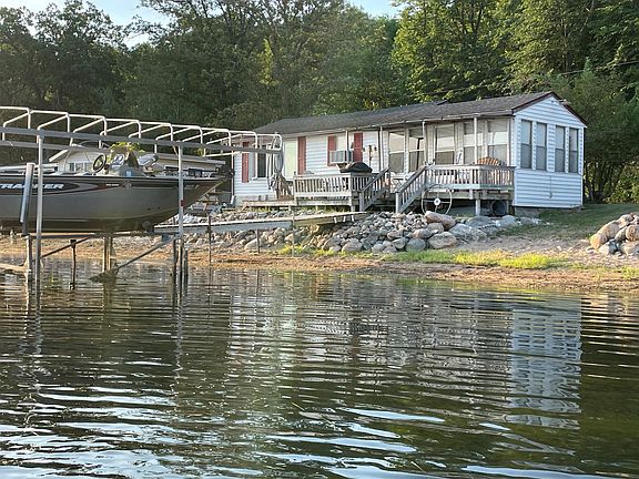 Seasonal cabin right on the lake with panoramic view. Watch the sunrise or sunset from your lake facing patio. Enjoy 100 ft of lakeshore with sandy bottom. Furnishing included with the sale along with dock and boat lift.
