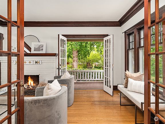 Welcome to this Wallingford craftsman in the Stanford Elementary geozone and a Walkscore of 86. You’ll appreciate the vintage details like oak and fir wood floors, crown moldings, a built-in buffet w/ leaded glass in the dining room, a wood fireplace in the living room and the rocking-chair-ready front porch facing a tree-lined street. The updated kitchen opens to a private back deck and yard w/ playhouse—perfect for a quiet evening or a summer BBQ with loved ones. Upstairs are 3 beds and 2 baths, including a coveted primary ensuite. The bsmt has a convenient 2nd ensuite with ¾ bath, a rec room, laundry, and garage access. Solar panels allow for reduced electrical bills. Great W-ford location means easy access to I-5, Hwy 99 and light rail.
