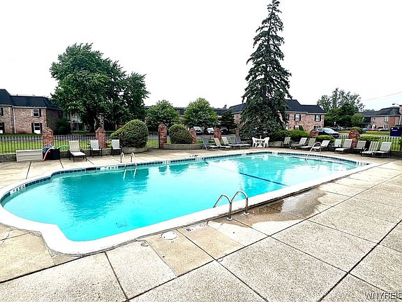 Well maintained 2 bedroom lower end unit in a desirable Amherst location close to UB with access to the major highways. Spacious and welcoming sunlit living room with sliding glass doors which open to the patio with a nice view. Kitchen boasts new quartz countertops. Brand new stainless steel appliances included. In unit stackable washer and dryer. Nice size bedrooms with ample closet space. Freshly painted and professionally cleaned. Convenient parking and a separate storage area as well. Enjoy a stroll on the well landscaped common grounds or take a swim or just relax by the in ground pool. Association fee includes water, gas and basic cable as well. Association takes care of exterior maintenance, snow and trash removal. Easy living!