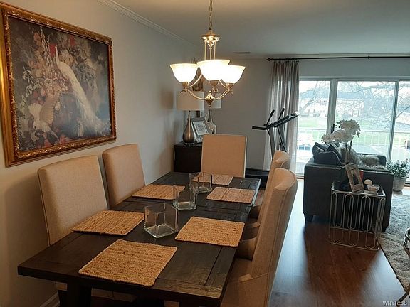 Impeccable condo with garage. High-end, tasteful upgrades are evident throughout. Beautiful laminate flooring complements open living room and dining area. Smooth ceilings and cove moldings add class. Big sliding doors to balcony provide view of pools and lots of light. Gorgeous kitchen with white cabinets, Corian counters, upgraded plumbing and lighting. Stunning bathroom with ceramic tile, solid surfaces, and soaking tub. Bedroom with laminate floors and spacious walk-in closet. In-unit laundry with extra cabinetry. Relocation forces sale. Spotless and stunning! 2021-05-20