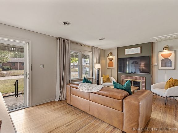 Charming red brick Ranch! Corner lot with detached side entry garage/shop. Amazing landscaping and Patio with Pergola. New Privacy Fence. Covered front porch. Cozy living room with Fireplace. Newer windows. Large kitchen area with eating area. Mudroom with Laundry. Versatile bedrooms with 3 beds or 2 living spaces. Updated bathroom. So much storage with great closets. Close to TU.