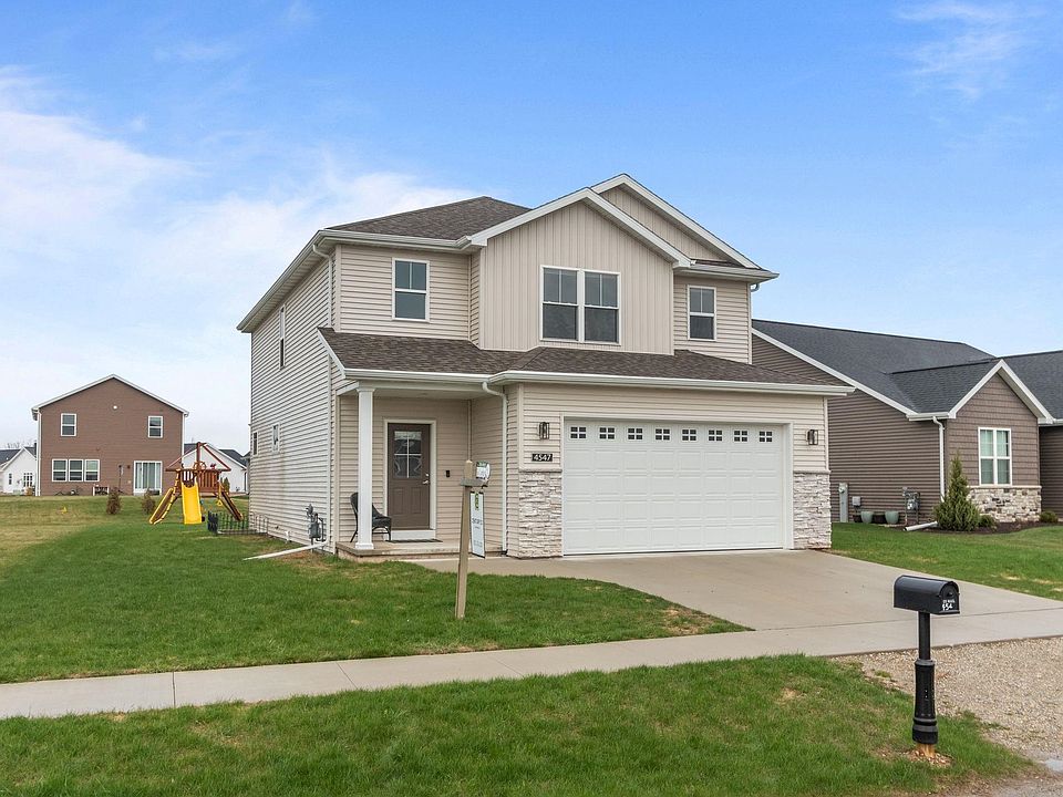 Why buy new when you can buy this gently lived in 2 year old home with a lawn, appliances and window treatments for thousands less than NEW. You will be welcomed by a 2 story foyer that leads you into the heart of the home. This home has an airy open concept with the spacious living room, dining area and kitchen with quartz countertops, LVT flooring, and Center island. As you come in from the 2.5 insulated garage you will find a large closet for storage, drop station and half bath. As you approach the upper level you will appreciate a large loft area that could be a play area, or office. The 2 bedrooms share an adjoining full bath. Primary suite is has its own walk in closet and full bath with double sinks/quartz counters. Convenient 2nd floor laundry room upstairs. Photos coming.