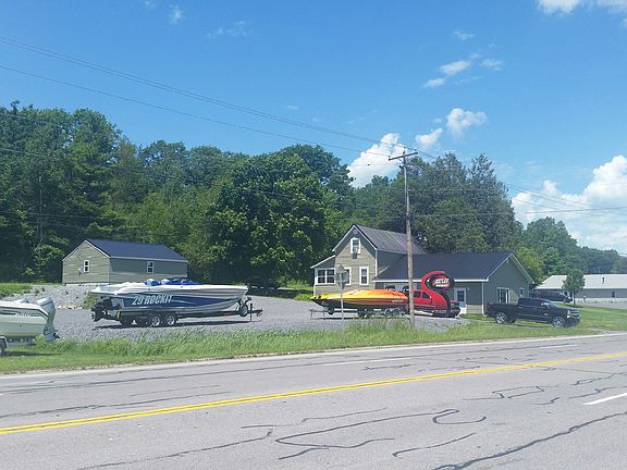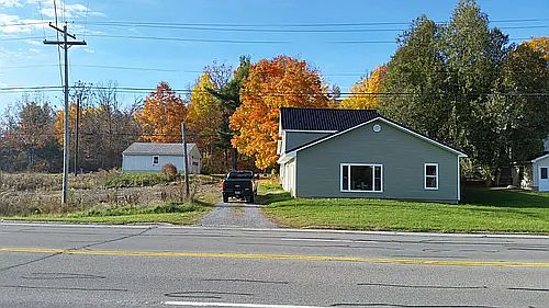Commercial Office Space & Garage on busy route 12 Alexandria Bay. Can be used for office or retail store (NOT A RESIDENCE AND CAN NOT BE USED FOR APARTMENT) Overhead Garage Door. Has a bathroom with sink hot & cold water NO SHOWER OR TUB. Nice wood storage cabinets in office area. Has very nice lighted outside signage with rotating sign. Parking area capable of parking about 20 cars.