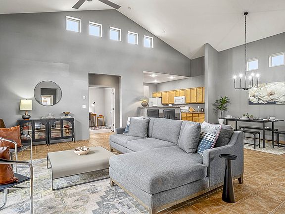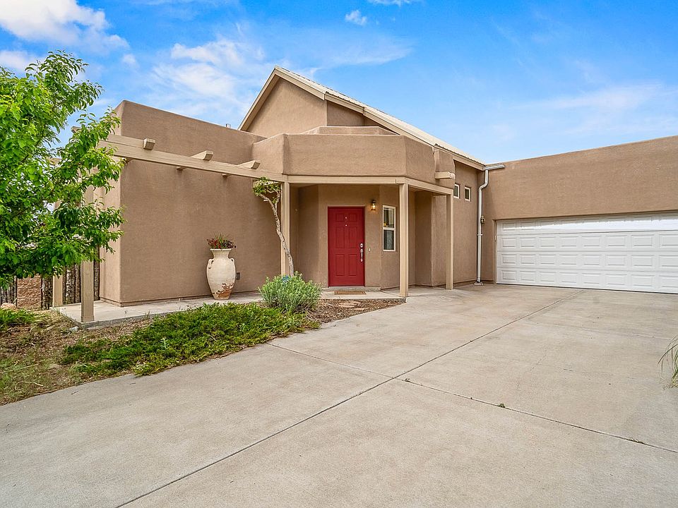 Sitting on a much desired corner lot in Santa Fe’s Tierra Contenta neighborhood, this charming, single-level (no interior steps!), 3-bedroom, 2-bathroom home offers a unique blend of Northern New Mexico style and modern design elements. Step inside and you will be captivated by the soaring ceilings in the open-concept, light-filled living and dining space. Thoughtfully designed for both comfort and versatility is a bonus office or den—perfect for remote work or creative pursuits. The home’s contemporary flare features exposed, painted, concrete floors in many rooms and is complemented by luxurious radiant in-floor heating throughout, creating a cozy retreat during Santa Fe’s cooler seasons. Equally special, is the private, wrap-around backyard, adorned with flowers and several mature trees, that a corner lot provides. Enjoy sunny mornings and peaceful evenings from this outdoor retreat. The patio is completed with clever sun shades that provide comfort in the warmer months and are easy to stow away for the winter season.The spacious, attached, two-car garage offers ample storage, making this sweet property the complete package. Tierra Contenta features convenient access to Highway 599, shops and restaurants, and is ideally located for those commuting to Albuquerque or Los Alamos. This fabulous find in Tierra Contenta combines privacy, style, and functionality in one of Santa Fe’s beloved communities.