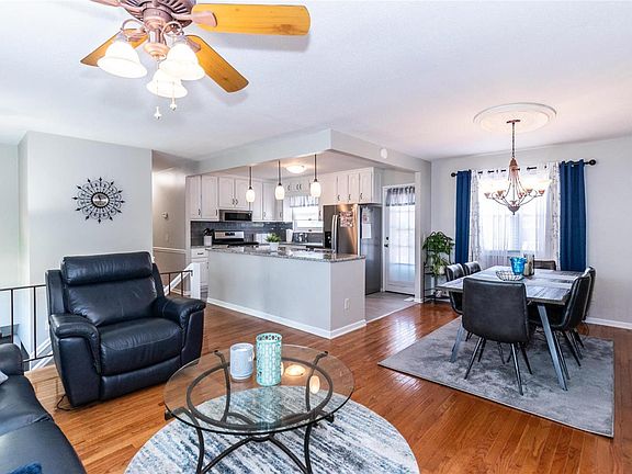 Updates Galore in this South County, Towne South subdivision beauty! Outside you will find, newer A/C, siding & trim, front doors, roof, gutters, downspouts, gutter guard, lighting, tuff shed, a large beautifully landscaped cul-de-sac lot w/fencing, deck, & patio. Inside greets you w/open floor plan. Beautiful kitchen w/island/breakfast bar, newer granite counter tops, backsplash, flooring & stainless-steel appliances. Updated full bath. Newer wood floors in Bedrooms. Downstairs a whole other living area w/wo, bath, kitchenette & newer flooring. Would be great for family/rec room, 4th bedroom or home office. Newer furnace, water heater & 200 amp electric panel. The seller has thought of it all! Now time for you to move in & enjoy! Great for entertaining!