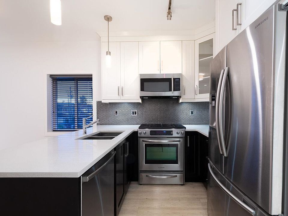 Stunning quartz countertopsStainless steel appliancesBreakfast bar seatingHigh ceilingsPlenty of storage spacesIn-suite laundryAbundance of natural light