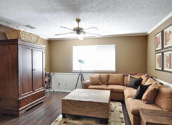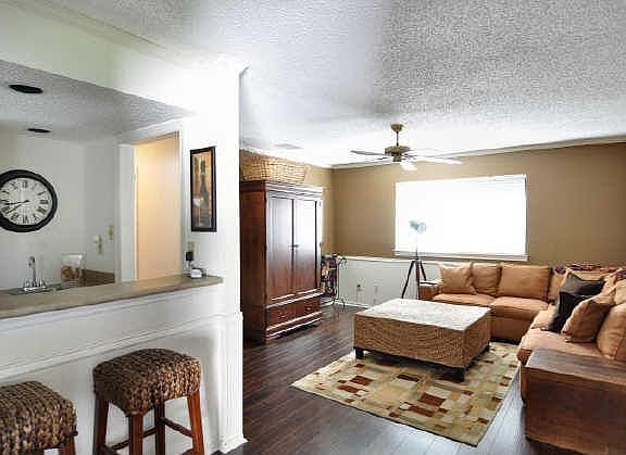 Immaculate home. Beautiful dark laminate floors, large living area with brick fireplace and wall of windows overlooking covered patio and large back yard with board on board fence. Large master bedroom has dual sinks, garden tub, separate shower, skylight, and large walk-in closet. The master is split from secondary bedrooms. Great kitchen with breakfast area. Large lot with extra parking area.