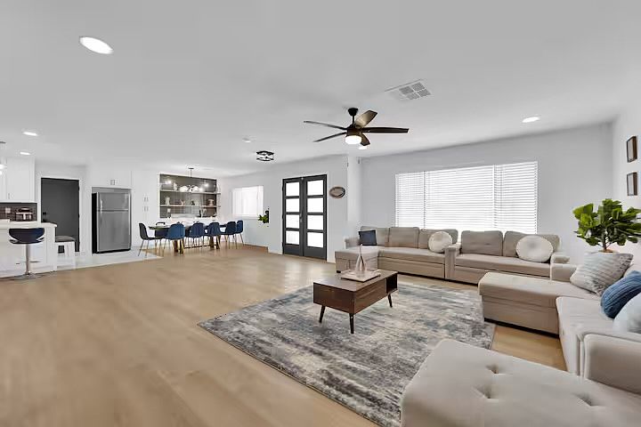 Fully furnished and expansive 4 bedroom/3bath modern one story pool home on quiet culdesac. 6 beds. Convenient location to airport, strip, and Henderson. Open concept with tons of space to enjoy! Flexible Availability with midterm or long term options. Prices vary by length of stay. Don't miss out on this gem!