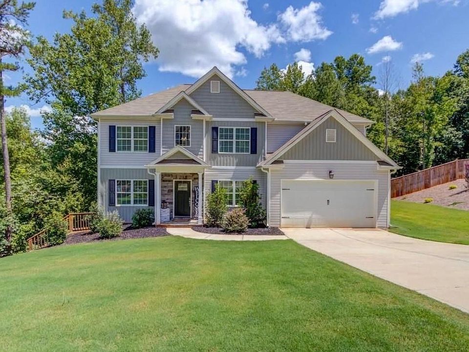 Beautiful 5bed/3bath home with plenty of space for the family, including an unfinished walk-out (daylight) basement. Large, fenced (6 foot) backyard that backs to trees (.59 acre). Main floor guest suite which would make a great in-law suite. Flex room on main floor would make a great office, second living room or play area. Upstairs you'll find the main suite with 3 additional bedrooms and secondary bathroom. Laundry room located upstairs as well. Large master has separated his and hers closets. "Her" closet has been upgraded with built ins. There is great outdoor space to enjoy the Georgia weather.