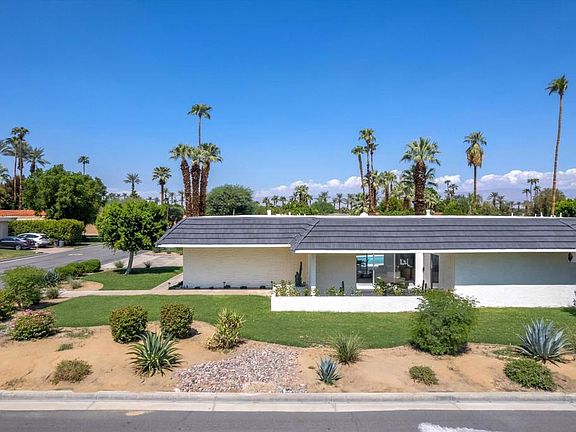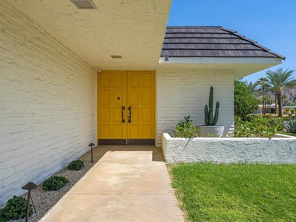 Welcome to Casa Via Corona, a 1970's time capsule; family rental in coveted Indian Wells. Enjoy a stay at this mid-century desert home! With 2,203 square feet and three bedrooms, up to 8 guests can visit and experience all that Indian Wells has to offer. Recently renovated, this beautiful home is the perfect location for all your Indian Wells adventures. Light and bright, comfortable and warm, you'll love this space. Situated on a corner lot with mountain views, you are just a short golf cart ride from El Dorado Country Club, a few minutes to El Paseo for some shopping and fine dining, and just a few blocks from the famous tennis tournaments. Enter through double doors to a foyer overlooking an atrium and leading to a spacious formal living area with vaulted ceilings and abundance of natural light. To the left you'll find a formal dining room and beyond that waits a well laid out kitchen full of charm with sunny yellow accents highlighting the island, bar, sink and countertops. A charming pass through to the dining area throws us back to a time that dinners were a formal affair. On the other side of the formal living room is an office that doubles as a bedroom. A large guest room overlooks the atrium off the entry and a full bath is at the end of the hall, boasting its own outdoor access. The master bedroom is oversized and overlooks the pool, featuring an en-suite bath and dressing area with plenty of closet space, dual vanities and a groovy step-down tub overlooking its own private outdoor space. The yard is large and private. With no HOA and a three-car attached garage, this home has so much to offer. Minimum Stay: 29 nights (per City requirements). Call for more info!