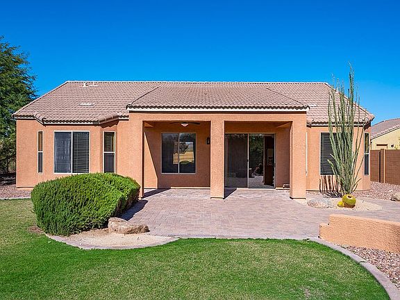 Welcome to Ventana gated private Community! This single story 3 car garage plan is situated on a phenomenal lot, with huge NAOS to the back and west side of the home, it's a rare find with exceptional privacy. Entering the home thru foyer with formal dining room thru to huge great room, featuring chef's kitchen- Kitchen Aid appliances- 5 burner gas stove top, Built in Microwave, Fridge, Dual ovens Dishwasher and RO System. Split plan has master on one side, and on the other 2 bedrooms, Office/ Den/ 4th Bedroom and bath. Fabulous backyard is surrounded by NAOS has large covered deck, Built-in outdoor kitchen, vast patio areas and grass that would be ideal for future pool.