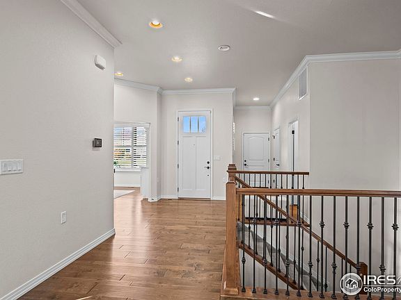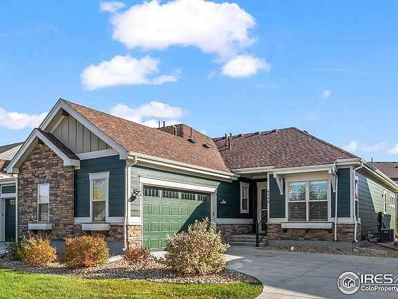 Enjoy life in this high-quality, low-maintenance modern paired home located in southwest Longmont's coveted Tramonto neighborhood. Beautifully designed and bathed in natural light, this ranch-style home has been meticulously maintained by the original owners and features numerous custom upgrades added after closing. (See additional documents for full list of upgrades). Elegant crown molding graces both the main and lower levels, complemented by plantation shutters and extensive custom built ins. Enjoy the beautiful Colorado weather on your private patio backing to green space with mountain view- perfect for entertaining and relaxing, equipped with retractable awning and sunshade for comfort. The open-concept floor plan offers gracious, high-ceiling rooms and seamless indoor-outdoor living. The chef's kitchen is a true centerpiece, featuring gas range, upgraded stainless steel appliances, and an oversized island with seating. The spacious primary suite includes a large walk-in closet and dual-sink vanity, while the main-floor office offers beautiful built-ins and plenty of natural light. The finished lower level provides a generous family room with additional built-ins, two sizable bedrooms with walk-in closets, and a full bath-perfect for guests or extended family. You'll find abundant storage areas on both levels, including an interior painted, attached two-car garage. This home is in pristine, move-in condition and provides truly maintenance-free living. Residents enjoy community gardens, park space, and the peace of mind that comes with an HOA covering exterior maintenance, hazard insurance, snow removal, trash, and grounds care. Don't miss this exceptional opportunity to live with ease, style, and comfort in Tramonto.