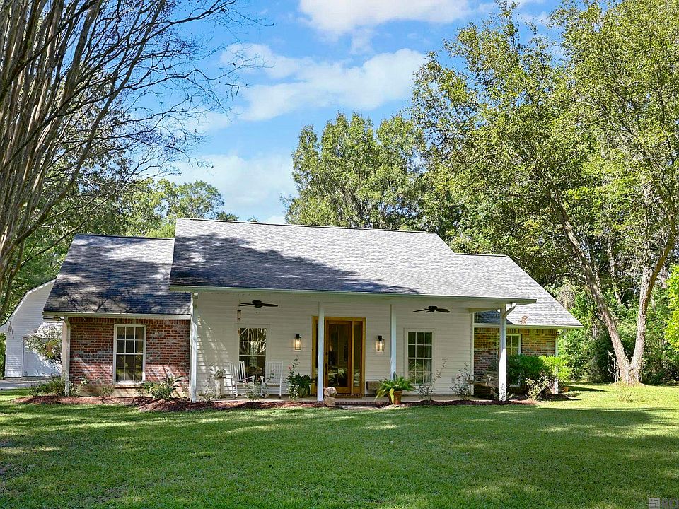 Experience luxurious country living on this beautifully wooded 6.6-acre estate bordering Grant's Bayou and located in southern part of West Feliciana Parish. This remodeled 4 bedroom, 2.5 bathroom home offers a bright and spacious open floor plan with plenty of windows. The chef-inspired kitchen features sleek quartzite countertops, custom-crafted cabinets, new plumbing fixtures and lighting. A suite of new appliances including dishwasher drawers and a Bluetooth exhaust system above the KitchenAid gas range make this kitchen one-of-a-kind! Adjacent to the kitchen, the keeping room provides a great space to relax and watch TV. It includes a bar area with a beverage refrigerator for easy entertaining. The extra-large primary bedroom is a serene retreat with two walk-in closets. The spa-like primary bathroom showcases a standalone tub and a custom shower with three shower heads. This primary bathroom has also been updated with new countertops, cabinetry, modern plumbing fixtures, and lighting. The three guest/family bedrooms are all generously sized with large walk-in closets. They share an updated Hollywood bathroom with custom cabinets, new countertops, plumbing fixtures, and lighting. A standout feature is the bathtub surround, which is tiled to the ceiling for a luxurious, finished look. In addition to the home's 2,565 square feet, an extra large two-story garage and workshop provides endless possibilities. The second-story office has a peaceful view overlooking the backyard. This beautifully renovated home offers a unique blend of modern luxury and tranquil, wooded acreage creating the perfect retreat.