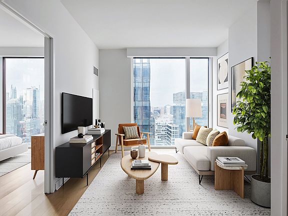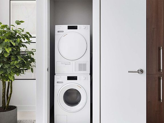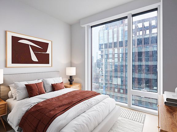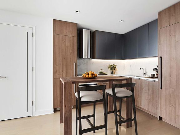Unfurnished, 1 Bedroom, 1 Bath features 9 floor-to-ceiling windows with southern exposure, European wide plank oak flooring, Miele washer/dryer, and smart home technology. Detailed kitchens equipped with state-of-the-art Subzero Wolf induction cooktop and oven, Brazilian white marble countertops and full-height backsplash complemented by custom Italian cabinetry with stainless steel hardware. Bathrooms beautifully blend luxury with ease and simplicity, including European gray tile floor, walk-in shower, and custom Italian vanity.