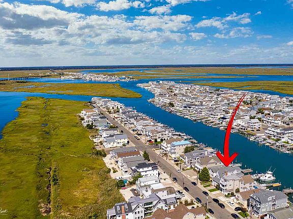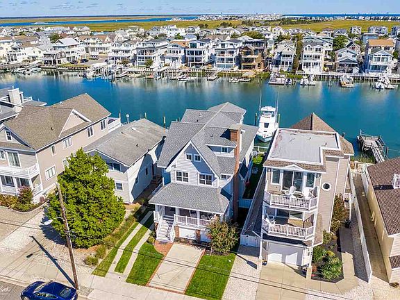 This unique bayfront home has the design elements and finishes of a classic Nantucket cottage, something not often seen on 7 Mile Island. The house has 5 BR's and 4.1 BA's in a traditional layout with the living areas on the first floor and bedrooms on the top two floors to take full advantage of the outdoor bayfront lifestyle. The open floorplan flows from the front door all the way through to the glass/screen enclosed Florida Room with heated floors on the bayside which is the heart of the home year around. Built in 2009, the home is tastefully decorated and in turn-key condition. There are two boat slips along with a fixed pier and large open back yard. The main floor has a cozy gas fireplace with built-ins, dining room and a second living area adjacent to the white kitchen with views of the bay. The Florida room is used as a second dining area plus another seating area. The open staircase flows to the second floor with 2 ensuite bayside bedrooms and two other bedrooms that share a Jack and Jill bathroom. The top floor is a bayside owner's suite with a private balcony and views of Princeton Harbor. There is plenty of storage under the house for kayaks, stand up boards, and all the other toys that come with bayfront living. The home is a short stroll to the shops, restaurants and activities of downtown Avalon but on a quiet dead-end street.