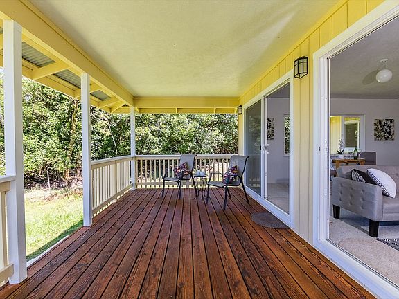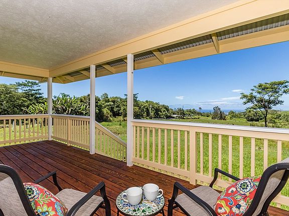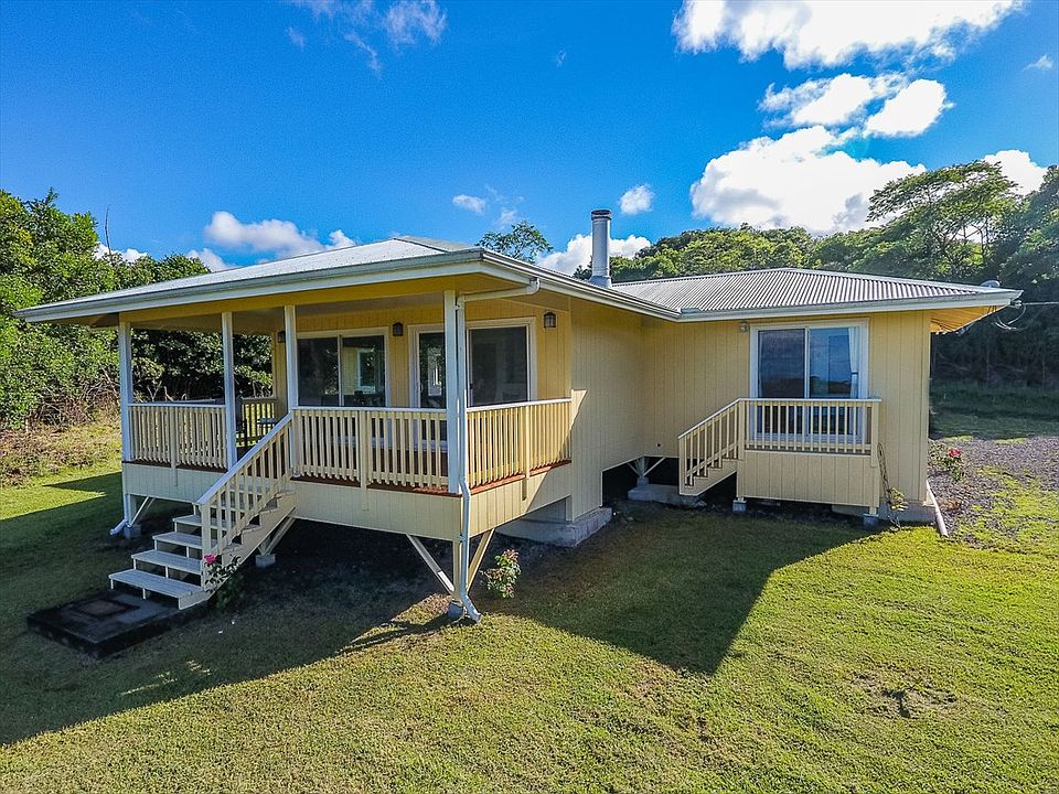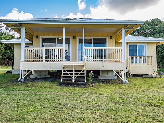 Need a place to sit back, relax and enjoy Hawaiian time as it passes! Whether your heart is aching to explore your inner ag spirit or you need an easy to expand home on acreage near Hilo Hospital, Saddle Road and an ez commute to downtown Hilo and the University, this is about as good as it gets. Located at a perfect 800 ft elevation, the home is in very good condition with soaring ceilings, a working fireplace and nicely sized kitchen. Space is maximized with a bedroom and bath on each side of the home. The master even has a small private deck. Enjoy, the sunrise, full moon, stars and sounds of nature from the 220ft makai lanai. A seasonal stream on one side of the property is a real treat following a rainy day or two of our warm Hilo rain. A small pasture with happy sheep is tucked down a drive behind the home. Lot F is 7.66 acres and Lot G with just over 9 acres make it easy to create a real family compound!