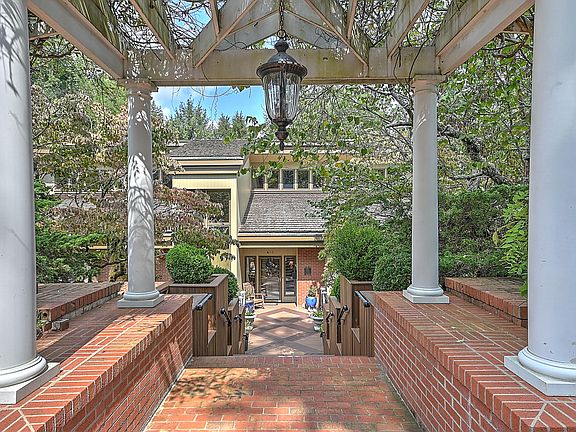 The backyard is surrounded by beautiful wrought iron fencing and the whole home is framed with mature trees, lush landscaping and plentiful parking.