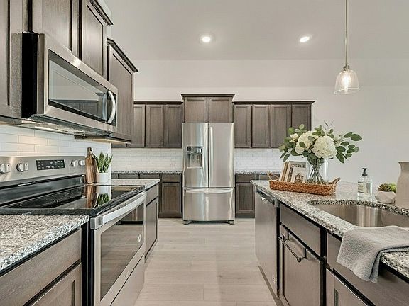 Brick and stone exteriorLaminate flooringStainless steel appliancesGranite countertopsEat-in kitchenWell-maintained landscapingGenerous closet