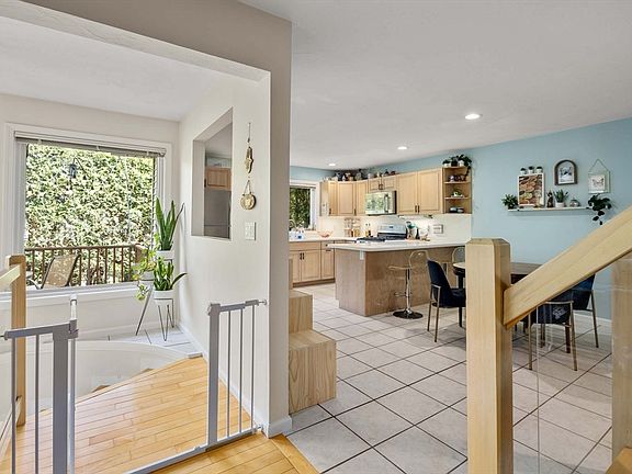 Expansive four-level Townhouse with abundant sunlight, high ceilings, wood floors, and inviting deck for entertaining. The large eat-in kitchen features stainless appliances with gas stove, breakfast bar, work space, and access to the deck. A spacious living room with gas fireplace is accessed from the kitchen/dining area or via the sweeping, curved staircase from the entry foyer. The second floor features a huge primary bedroom with gas fireplace, cozy seating area, walk-in closet with ample storage, and high ceilings. The bathroom offers a jacuzzi tub and separate shower stall. The second bedroom has an en-suite bathroom and large closet. A third level loft space is ideal for an office or reading area and has ample light via skylight. The lower level has a custom built coat closet, ample storage, and garage access with two-car tandem parking. HVAC system (AC, furnace, heat pump) and Navien tankless hot water were replaced in 2023. "Smart" switches, outlets, thermostats, and locks.