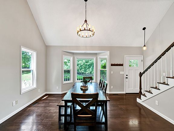 **PRICED BELOW RECENT APPRAISAL** Welcome to this fabulous Ranch with a basement. Located on a private Cul-de-sac, escape to the wooded natural landscaping and long-range mountain views. Enjoy the fresh country air on the Rocking Chair front Porch. As you enter the front door, you will be greeted by an open floor plan with tons of updates! Neutral paint, water resistant engineered hardwoods, new light fixtures, vaulted ceilings, newly renovated kitchen and cozy new recessed fireplace. Dream Kitchen includes newer Stainless-Steel appliances, soft closed cabinets, pantry with deep cabinets, a built-in spice rack and cutting board storage, deep farmhouse sink, new island with deep drawers for all your pots and pans among other things. This home offers 2 bedrooms and 2 full bathrooms and large renovated laundry room on main. The luxurious Master on Main suite features a completely renovated bathroom featuring a tiled walk-in shower with glass doors, soaking tub, double vanity with lots of storage, and double walk-in closets with custom shelving. A generously sized second bedroom has access to the shared guest bath. Upstairs and through the barn doors you will find a bright sunny third bedroom with a half bathroom. New carpet, custom shelving, walk in closet end extra attic storage as a Bonus!!! Partially finished basement includes updates such as new paint, new trim, along with a new bathroom vanity. One finished room is being used as an additional bedroom! The other room can be used as an office and has built in shelves ideal for the hobbyist, collector, or prepper! The unfinished basement area has a door and a single garage door access with a paved driveway for toys, a boat, or lawn equipment with plenty of room for a workshop and additional storage area. A 2-car detached garage with covered access to the house and an extra-long driveway allows plenty of parking for all your family or guests. All of this on a private 6-acre lot!