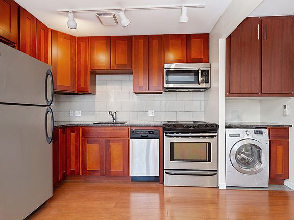 *Open kitchen with ample cabinetry and storage, washer/dryer combo, dishwasher, and built-in microwave;