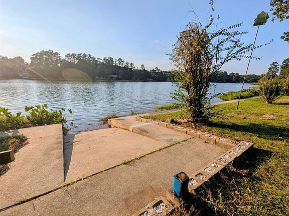 Set on a peaceful private lake in Lakeside Village, this charming split-level waterfront home has seen many upgrades but still offers a few opportunities to make it your own. Recent improvements include new tile flooring, fresh interior paint, updated light fixtures, and custom tile shower surrounds. The layout features 3 bedrooms and 2 bathrooms, plus a spacious den with a wood-burning fireplace and walk-in closet—perfect for use as a fourth bedroom, or second living area. Just off the kitchen, you’ll also find a flexible bonus space ideal for a butler’s pantry, coffee bar, or extra storage. Step outside and enjoy true lakefront living with a private concrete boat ramp and concrete bulkhead, giving you easy access to the water for fishing, boating, or simply relaxing by the water. Whether you’re looking for a full-time residence, weekend escape, or a property you can still personalize, this one offers comfort, flexibility, and scenic views in a well-established waterfront community