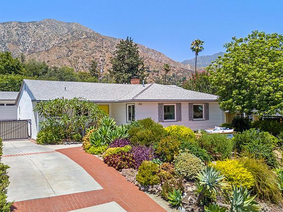 A gorgeous succulent garden and delightful brick front patio greet your entry at this stylishly remodeled Mid-Century Ranch-style home built in 1952. The single-level floor plan with hardwood floors features a modern, open living environment filled with an abundance of natural light and views to the spacious garden and another brick patio. The kitchen has Carrera marble countertops, a kitchen island and stainless-steel appliances. French doors from the dining area open to the outdoors. And the living room, with a large picture window, features a gas-burning fireplace. Recessed lighting is located throughout the home. Adjacent to the kitchen is a separate laundry room with side-by-side washer and dryer. The primary suite is spacious, private and has a large bathroom with beautiful countertops, dual sinks and a separate toilet closet. There are four bedrooms, and three bathrooms. Closet space is abundant in all the bedrooms. The expansive lot has plenty of room for play, dining, entertaining and relaxing. There are raised garden beds, loquat, guava and jujube trees. Imagine stepping out onto the brick patio in the back yard at sunrise to stretch and to listen to the songs of a dozen different bird species greeting the day. The location of this wonderful home couldn't be better. The delightful street, with other well-cared for homes, is within proximity to every reason you'd want to live in Sierra Madre. Sierra Madre Elementary School is nearby, and Sierra Madre Middle School is around the corner. The fantastic restaurants, cafes and shops that the charming town is so beloved for are only blocks away.