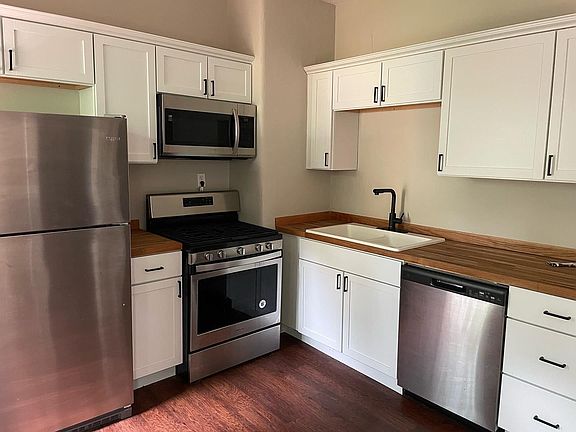 Completely renovated 2 bed 1 bath single family home includes a lovely, plant filled, fenced backyard with gate access to alley. Comes with 2 backyard storage sheds as well as outdoor furniture. Hardwood and laminate flooring throughout, and a kitchen including white cabinets, butcherblock counters, stainless steel appliances, and a wall mounted breakfast bar. All appliances come with the unit including washing machine and dryer. Easy access to UofL, expressways, and restaurants. Located in a quiet area on a dead-end street. Listed as Somewhat Walkabout and Very Bikeable by Walkscore.