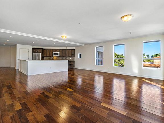 City living at its best! Located in a premier boutique building with city views. Open, spacious, bright and designed for today's casual lifestyle. The dine-in gourmet kitchen is part of the open great room enhanced by custom cabinetry, granite counters and stainless appliances. Complete with 2 spacious balconies this upscale interior design includes high ceilings, contemporary baths and a generous floor plan with wood flooring throughout. Enjoy clean modern elegance featuring a private keyed elevator to your front door, covered garage parking, pool, plus secured entry with concierge service. Offering carefree luxury living at a choice in-town address, 5 Palms is composed of only 16 condos, just a short distance from the beach, Intracoastal and Mizner Park.