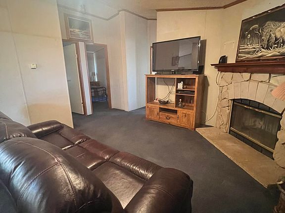 This three bedroom, two bath home sits on a little over an acre. It has two living areas, a fireplace, and an enclosed porch. The home also has refrigerated air. The yard is fully fenced with mature trees, two driveways, a workshop, and a storage building. It's a solid property with plenty of space inside and out.