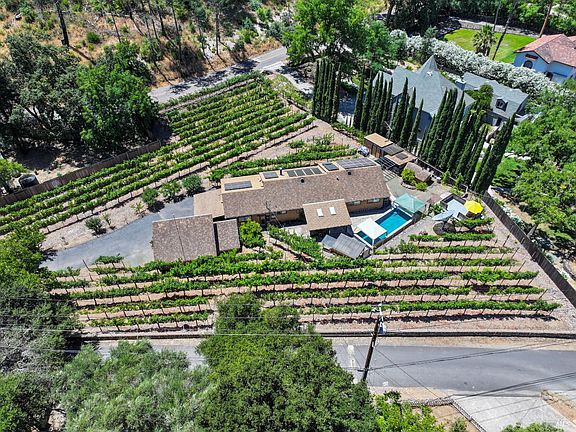 A unique opportunity to acquire a distinguished property in Napa Valley. This expansive parcel, over an acre in size is ideally located near downtown St. Helena. The estate features a landscaped vineyard with a variety of grapes, including Cabernet Sauvignon, Sauvignon Blanc , Zinfandel and Chardonnay, complemented by a driveway lined with assorted fruit trees. The single story residence offers 1530 +/- square feet of living space, incorporating three bedrooms and two bathrooms. Additional features include a vaulted ceiling and free standing fireplace in the living room, as well as a generously sized kitchen and family room area equipped with a built-in wet bar. Outdoor amenities include a saltwater lap pool, patio, barbecue area, hot tub and a charming view deck for enjoying the surrounding natural scenery. Practical additions include a separate workshop, a two car garage and carport, underground wine cave with wine making equipment included, a high yield 300' deep well and solar panels for enhanced efficiency. Submit offers!