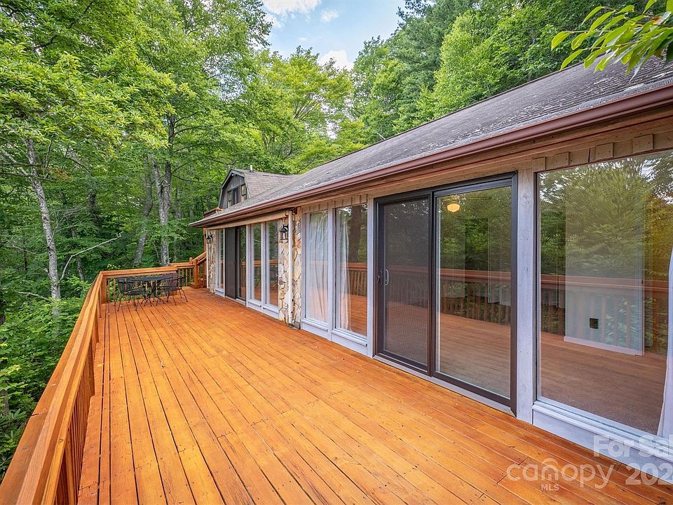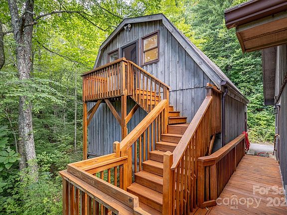 Come sit on the porch of this 2 br 2 1/2 bath home. If you want to relax in a tranquil setting and still only be a few miles from town you have found it. With the home set inside the 5 acres of land on a private dead end road its extremely private. Large windows and doors allow you to see your view of your deck and nature. Master suite also has a wall of glass to enjoy. Kitchen is large enough with seating at the center island to have private sittings or for large gatherings. Third bedroom is above the garage and has a half bath. Electric fireplace provides the heat in the winter. Access to it is from the large deck that spans the entire home. Grocery store within 2 miles. The wildlife can be heard around you crushing leaves while you sit on the deck and have your favorite beverage. Per owner there is a small cave on the property and the dear trials everywhere. This home has a lot to offer. Pictures can only show so much. Call us or ask your agent to come show you how private it is.