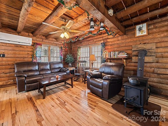Come tour this well maintained 2BR, 2BA log cabin just off of HWY 276 in the Bethel community of Canton! Conveniently located 13 minutes from downtown Waynesville and 12 minutes from downtown Canton, this home boasts an expansive back deck complete with gazebo, and covered front and rear porches to enjoy outdoors in any weather! Recent updates include a 2024 installed metal roof, new washer/dryer, and a 2021 installed mini-split system. With a detached two car garage that would make a great workshop, chicken coop to start your own endless supply of eggs, and a wood burning stove in the living room to cozy up to on those cold winter nights, this cabin leaves little to be desired! Call today for your private showing!