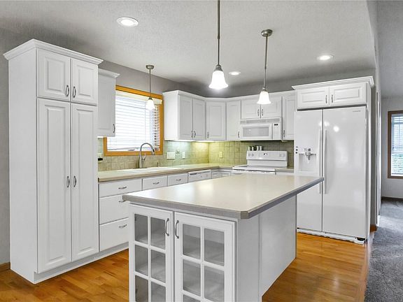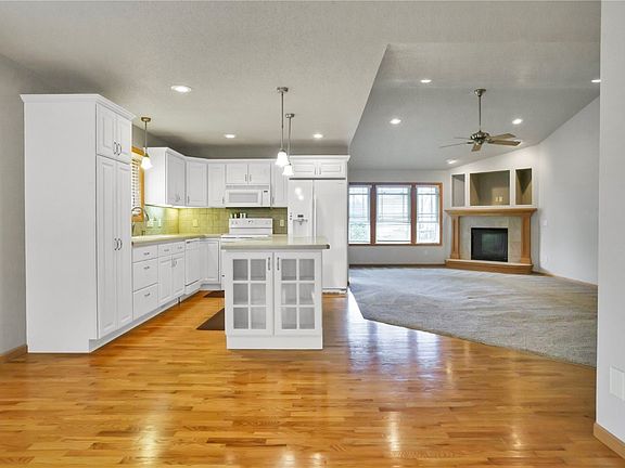 Welcome to this beautiful zero lot condo, where an inviting open floor plan showcases beautiful hardwood floors in the kitchen, dining area, and formal dining room. Large bay windows flood the space with natural light, and the expansive kitchen island features a handy breakfast bar. Recent updates include refreshed carpet and paint, adding a modern touch. The great room offers a cozy gas fireplace, while a sunlit four seasons room leads to a spacious 10' x 19'6' Trex deck and a delightful backyard. The roomy master suite boasts double sinks, a 5' shower, ample cabinet space, and a convenient walk-in closet. The finished lower level offers flexibility with a spacious rec room, a large full bath with extra storage, and a nice sized storage room. All appliances, including a washer/dryer, are included, and the condo is equipped with central vac for added convenience.